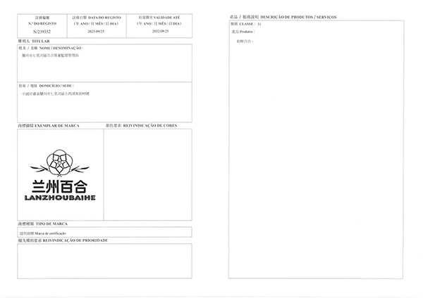 近日,兰州百合地理标志证明商标在澳门特别行政区成功注册,这一重要突破不仅标志着这一甘肃特色农产品在澳门获得了法律保护,更彰显了中国地理标志产品的国际影响力。